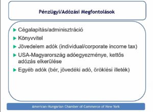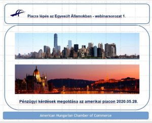 Az Amerikai Magyar Kereskedelmi Kamara 2020. május 28-án tartotta meg a Piacralépés az Egyesült Államokban című webinarsorozatának első előadását. A beszélgetés témája a pénzügyi kérdések megoldása az amerikai piacon volt.